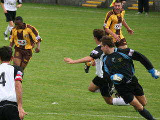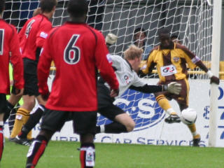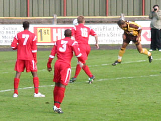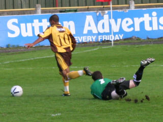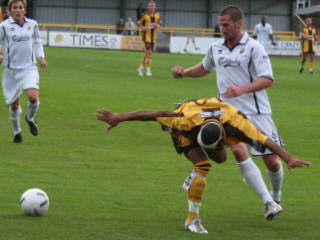 U’s v Basingstoke (19/08/06) Final score: 3-3 Sutton will feel like they could've taken all 3 points at the death in this match after coming from behind twice. The U's got on the board first when Matt Gray connected with a looping cross at the back post. He volleyed the ball straight into the ground and it then bounced up right in front of the keeper into the top of the net. The Dragons then scored two very similar goals. On both occasions Phil Wilson did well to save the initial shot only for the rebounds to be put away by a 'Stoke player. The second half saw a bright start for the U's and they soon found themselves level when Peter Fear connected well at the back post to send a powerful header over the line. The yellows then felt like all their hard work to get level was undone when a bizarre Refereeing decision gave the visitors a penalty. A Basingstoke forward was closing in on Phil Wilson, he then lifted the ball over Phil who was by now spreading himself to try and narrow the angle, the lob went wide and the 'Stoke player then collided with Wilson. The ref then pointed to the spot and didn't even book Wilson for the apparent infringement. Basingstoke put themselves ahead again from the spot. The U's battled hard to try and find the equaliser, and eventually Neil Lampton chose an excellent time to score his first league goal. A superb right footed volley was sent screaming across the face of the goal into the opposite far corner. With the match heading towards a draw John Scarborough could've pinched all three points but managed to send his, at full stretch, sliding shot back to the wing that the cross had come from. Team: P Wilson, R Palmer, L Gonsalves, J Scarborough, M Gray, N Lampton, M Gordon (R Crockford), P Fear, C Gibbs (E Akuamoah), Z Graham (S Douglas), M Johnson. Subs (not used): P Honey, M Maan Goals: Gray (29), Fear (57), Lampton (77) Havant: A Jones, D Ray, J Bruce, D Brown, J Dolan, F Quarm, A Ottley, B Surey (N Roach), B Wright, M Peters, M Warner. Subs (not used): J Bristow, M Ottley, M Ahmad, J Harris Goals: Brown (34), Peters (43,74 pen)