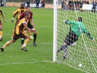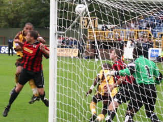 U’s v Bishops Stortford (30/09/06) Final score: 1-3 Once again the U's fall out of the FA Cup at the first hurdle. After going behind in the 41st minute it took another two Stortford goals before the Yellows decided to turn up. A Ross Gaynor shot that was deflected in off of Peter Fear was all the fans had to cheer about. The game eventually ended 10 a side as both Roy Essendouh and Zak Graham were sent off for separate incidents in the last 5 minutes. Team: L Naughton, R Palmer, N Lampton, L Gonsalves, E Akuamoah, P Fear, M Gray, P Honey (Z Graham), R Gaynor, R Harris (C Gibbs), M Johnson. Subs (not used): M Maan, S Clayton, B Duke Goals: Fear (68) Stortford: C Wright, D Collis (A Martin), M Jones, M Porter, M Stanbrook, R Gilman, R Howell, J Mason, C Ademeno (R Essandoh), J Midson, A Fuller. Subs (not used): R Lockett, T Langer, A Young Goals: Howell (38), Midson (55, pen), Ademeno (63)