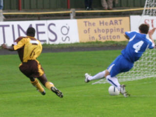 U’s v Weston-super-Mare (12/09/06) Final score: 3-1 Again the U's conceded an early goal, but with an all new strike partnership of the two on-loan players, Ross Gaynor and Charlie Ide, there was still a confident buzz about the team. United then started playing football, shocking I know but true. With the midfield linking up well with the young strikers it really did seem like it would only be a matter of time before we scored. Gaynor's first came after a mazy run from Ide whose shot was poorly dealt with by Weston's 'keeper. The rebound fell kindly for Gaynor who didn't hesitate to capitalise on the opportunity. The second came from a training ground set piece a yard or two outside the box. Gaynor ran over the ball only for Michael Johnson to roll the ball for Gaynor to ferociously strike into the top right corner. To make it harder for the visitors they were reduced to ten men just before the break after one of their forwards received his second yellow card for a late challenge on Paul Honey. Sutton came in at the break 2-1 to the good and that was after not being given a penalty for a push on Ide and two disallowed goals! After the break it was only the Weston 'keeper who kept the score line respectable. Gaynor eventually rounded off his debut with a hat-trick as the U's continued to pepper the Weston goal. Chances for Ide and Michael Johnson in particular were superbly saved by Ryan Northmore. With the game heading into the last 5 minutes Weston were handed a penalty and could've made the scoreline look a lot closer than it deserved to be. However Clint Davies' right upright had other ideas and the penalty hit the base of the right post and was eventually put out of play. A superb performance gave the U's their first home win of the season and another cult hero. Team: C Davies, R Palmer (S Broad), J Scarborough, L Gonsalves, E Akuamoah, P Fear (R Crockford), M Gray, P Honey, C Ide, R Gaynor, M Johnson (C Gibbs). Subs (not used): P Wilson, R Harris Goals: Gaynor (22, 27, 53) Weston: R Northmore, L Henry, D Hawkins, L Jarman, G Thorne, M Rose (S Walker), S Simpson (C Loxton), M McGregor (sent off 34), G Hopkins, M Brown, G Owers. Subs (not used): S Bailey, C Mawford, M Kilgour Goals: McGregor (4) U’s v Welling (16/09/06) Final score: 0-1 After having the best of the chances in the first half the yellows conceded within minutes of the start of the second. Once again the U's then found themselves unable to create chances in front of goal. And even when a Welling defender blatantly bundled over Charlie Ide in the box the comedy pairing of ref and linesman did nothing. Ultimately a game where Sutton will look back and wish the chances in the first half had been taken. Team: P Wilson, R Palmer, J Scarborough, L Gonsalves, E Akuamoah, P Fear (C Gibbs), M Gray, P Honey, C Ide, R Gaynor (R Harris), M Johnson. Subs (not used): L Naughton, S Broad, S Clayton Goals: - Welling: J Turner, M Goodfellow, L Solomon (J Guest), D Boateng, C Moore, B Lewis, M Bodkin (R Benjamin), D Kedwell, S Perkins (A Edusei), E Green, J Day. Subs (not used): K Rowland, P Hyde Goals: Kedwell (46)