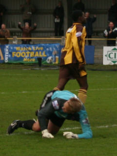 U’s v Braintree (25/11/06) Final score: 2-3 A last gasp winner put Braintree into the hat for the next round, just after the U's had had a shout for a penalty at the other end turned down. The Irons took the lead in the first half from a deep cross, from the right, to the back post that was then volleyed home. Sutton pulled themselves level when Warren McBean pounced to mop up a goal mouth scramble and force it over the line. The U's went in at half time at one a piece hoping to take it to the visitors in the second. As the second half kicked off the heavens opened and proceeded to lash down for the next 40 minutes. The Yellows were behind again with 25 minutes to go, after Eddie Akuamoah was dispossessed on the half way line. The Braintree player then sped towards goal and placed it in off the far post of Phil Wilson's goal. As the rain continued to pour down Sutton went in search of the equaliser. It eventually came from a long ball forward that Matt Gray managed to lift over the advancing 'keeper, McBean was then on hand to make sure it hit the back of the net to claim his second against his former club. Coming into the final minute Richard Harris was blatantly pushed and pulled in the box only for a free kick to be given the other way as his marker fell over first. Shortly after this Braintree claimed their third and a place in the next round. Sutton's match was made all the harder by more inconsistent refereeing and a seeming inability to book Braintree players for obvious, cautionable, offences. Team: P Wilson, E Akuamoah (R Harris), L Gonsalves, J Scarborough, R Palmer, B Alimi, T Quinton, M Gray, P Honey, R Gaynor (Z Graham), W McBean. Subs (not used): L Naughton, A Bray, R Watts Goals: McBean (21,69) Braintree: N Morgan, B Burgess, M Jones, O Adedeji, R Edwards, B Quinton, R Martin, L Bailey (R Sutton), E Ofori (J Baker), B Brayley, L Riddle (S Good). Subs (not used): D Bradshaw, D Plumme Goals: Brayley (17), Martin (64), Burgess (90)