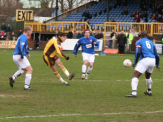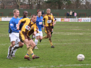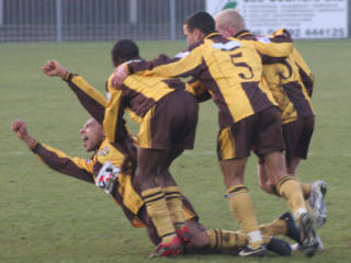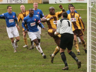 U’s v Eastleigh (20/02/07) Final score: 2-2 The U's will be disappointed that they didn't do better against a team that is below them in the league. After initially going behind the yellows battled hard to get back into the game. Two quickfire goal mouth scrambles, finished by McBean and Gray, gave Sutton the lead but once again from then on the U's seemed to sit back too much. Eastleigh drew level in the 52nd minute after Lewis Gonsalves conceded a free-kick just outside the area. The resulting shot was drifted over the wall and in off the post. Neither 'keeper was then really called into action for the remainder of the game. The game was also blighted by some incredibly inconsistent and occasionally baffling refereeing. Team: G Hogan, A Bray, L Gonsalves, R Palmer, T Quinton, P Honey, M Gray (C Tanner), R Gaynor, R Harris, W McBean, B Alimi. Subs (not used): L Naughton, R Blackwell, J Henry, P Fear Goals: McBean (18), Gray (22) Eastleigh: J Pullen, T Mustafa, I Oliver, J Brown, C Collins, K El-Salahi, D Smith, A Forbes, S Watts (C Wilson-Denis), D Hughes, D Wheeler (L George) Subs (not used): S West, R Marshall, W Shaw Goals: Forbes (11), Watts (52) U’s v Hayes (24/02/07) Final score: 1-0 On a heavy pitch Sutton claimed all three points with a Tony Quinton goal in the 20th minute. Up to that point the U's had peppered the Hayes goal with both Ross Gaynor and Matt Gray hitting the framework. Hayes then began to work their way back into the game, but just couldn't create any chances in front of goal. The second half was fairly equal in possession but again Hayes failed to trouble Phil Wilson. At the other end though Kevin Davies was called into action on more than one occasion, making excellent saves from Jason Henry and Gaynor in particular. Team: P Wilson, C Tanner, L Gonsalves, R Palmer, T Quinton, P Honey, M Gray, R Gaynor, R Harris (J Henry), W McBean, B Alimi (A Bray). Subs (not used): L Naughton, E Akuamoah, P Fear Goals: Quinton (20) Hayes: K Davies, J Dyer, G Nauko, M E’Bayer, A Logie, O Jeffrey, D Dyer, R Ashe, M Bartley (K Knight), S Palmer, L Feeney. Subs (not used): J Haverson, A Wembakungu, K Karamoko Goals: -