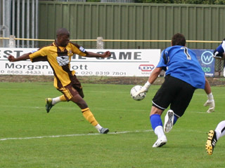 U’s v Hayes & Yeading (15/09/07) Final score: 1-2 In a game where a win was so important, the U's managed to throw away a 1-0 lead. After surviving a goalless first half, Sutton took the lead when Warren McBean produced his trademark finish of cutting in from the left and then curling a shot in at the far post. The visitors eventually equalised and then went on to grab the winner when a Sutton defender handled in the box. In the dying minutes the U's might have grabbed an equaliser of their own but some last gasp defending kept the oppo's lead intact. Team: Gareth Williams, Alan Bray, Lewis Gonsalves, John Scarborough, Liam Pestle, Bashiru Alimi, Paul Honey, Solomon Taiwo (Nick Greene), Malik Buari, Warren McBean, Craig Watkins (Jason Henry). Subs (not used): Phil Wilson, Asher Hudson. Goals: McBean (55) Hayes & Yeading: Preddie, Allen-Page, Collins, Cadmore, Saroya, Gregory, Perkins (Collins), Hendry, Martin, Jones (Scott)[Mulley], Little Goals: Collins (72), Hendry (83 pen)