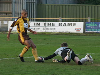 U’s v Bishops Stortford (22/12/07) Final score: 0-1 The U's almost had a point in the bag, but an awful decision from the linesmen saw Stortford steal a goal in the final minute. The U's produced few chances themselves although an early shot from Liam Wright and then a flurry of good corners towards the end of the first half did call the Stortford defence and 'keeper into action. Sutton also had a good shout for a penalty when Craig Dundas' shot was handled at the near post. Team: Phil Wilson, Dean Sammut, Lewis Gonsalves, Jack Haverson, John Scarborough, Bashiru Alimi, Liam Wright, Paul Honey (Jason Goodchild), Craig Dundas, Rob Hughes, Nicky Greene. Subs (not used): Alan Bray, Tom Hughes, Bernard Collignon, Jason Goodchild, Gareth Williams. Goals: - Stortford: Welch, Jones, Lunan, Edwards, Goodacre, Stanbrook, Langer, Mason (Harris), Pearson, Midson, Dean (Champion). Goals: Pearson (90)