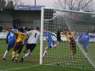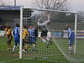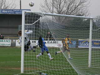U’s v Hampton & Richmond Borough (26/12/07) Final score: 2-2 Sutton travelled to the Beveree and after four minutes had taken the lead from a Jack Haverson header which looped in at the far post. Then the Ref, who must be in panto somewhere, stepped in to spoil the game. Firstly he awarded Hampton a penalty after it appeared that Phil Wilson made a legitimate save. Then just before half time he failed to award one of several fouls to the U's and from this Hampton when on to take the lead. The U's grabbed an equaliser when Craig Dundas knocked the ball through and Liam Wright managed to nip in between the defence and the 'keeper to grab Sutton's second. The Beavers then laid siege to the U's goal but Sutton managed to hang on for the point. Team: Phil Wilson, Dean Sammut, Lewis Gonsalves (Alan Bray), Jack Haverson, John Scarborough, Bashiru Alimi, Bernard Collignon (Liam Wright), Jason Goodchild, Craig Dundas, Rob Hughes, Nicky Greene (Paul Honey). Subs (not used): Tom Hughes, Gareth Williams. Goals: Haverson (4), Wright (72) Hampton: M Lovett, G Harper (K McIntosh), B Mathews, O Jeffrey, R Paris, D Wells, S Lake, E Godfrey, I Hodges, J Jeffrey, F Quarm. Subs (not used): A Inns, E Frost, R Lake. Goals: Godfrey (9, pen), Hodges (45)