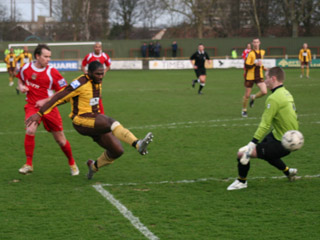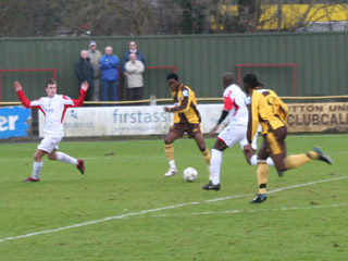 U’s v St. Albans City (05/01/08) Final score: 2-1 The U's completed a last minute smash and grab raid to take all three points. It looked like it was going to be another one of those days when the Saints got a penalty very early on, thankfully the taker fluffed it straight down the middle into a grateful Phil Wilson's arms. St Albans took a second half lead as they dominated the play. However three dismissals in a short period of time swung things back in the U's favour. Firstly, Nicky Greene got involved with a Saints' midfielder and both rightly got there marching orders. Then a Saints' player was given his second yellow after bringing down Bash in the box. Craig Dundas confidently stepped up to make it all level from the spot. The last minute winner was superbly crafted by Harry Ottaway who skipped between two defenders on the right and then put in an inch perfect pass for Scarborough to score. Team: Phil Wilson, Dean Sammut, Alan Bray, Jack Haverson, John Scarborough, Bashiru Alimi, Jason Henry, Paul Honey, Craig Dundas, Warren McBean (Harry Ottaway), Lee Maskell (Nicky Greene). Subs (not used): Tom Hughes, Joe McLoughlin Goals: Dundas (77 pen), Scarborough (90) St. Albans: N Eyre, J Faal-Thomas, C Vargas, H Deen, R Frater, M McKie, H Twomey, P Bruce, J Stevenson, L Clarke, S Cousins. Subs (not used): J Archer, A Byfield, K Asamoah, S Henry, C Haslam. Goals: Stevenson (73)