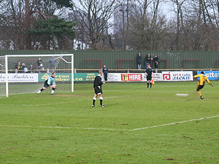 Final score: 2-1 A superb performance from the U's saw them grab their first home league victory of the season. Two goals from Craig Dundas, one from a penalty, were enough to give the U's something to celebrate on New Year's day. Hampton grabbed their goal minutes after Dundas' penalty opener, but Dundas was in the right place at the right time to put in the winner just after the start of the second half. Team: Phil Wilson, Dean Sammut, Alan Bray, Jack Haverson, John Scarborough, Bashiru Alimi, Jason Henry (Harry Ottaway), Paul Honey, Craig Dundas, Warren McBean, Lee Maskell (Jason Goodchild). Subs (not used): Tom Hughes, Liam Wright, Joe McLoughlin Goals: (Dundas 31, 46) Hampton: Lovett, Harper, R. Lake, O.Jeffrey, Barnett (Frost), S.Lake, Inns, Godfrey, J.Jeffrey, McAuley, Quarm (McIntosh) Goals: S.Lake (32)