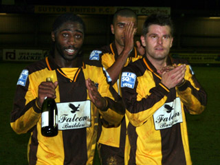 U’s v Fisher Athletic (19/01/08) Final score: 2-4 Despite going 1-0 up within a minute of the start and then equalising (2-2) in the second minute of the second half Sutton failed to take anything away from Champion Hill. Andre McCollin grabbed all four of the home team's goals, while Craig Dundas got both of Sutton's. Team: Phil Wilson, Dean Sammut, Alan Bray, Tom Hughes (Jason Goodchild), Jack Haverson, Bashiru Alimi, Rob Hughes, Lee Maskell, Harry Ottaway, Craig Dundas, Warren McBean (Liam Wright). Subs (not used): John Scarborough, Ouzo Opara. Goals: Dundas (1, 47) Fisher: S Overland, S Jackson, M Wright, K Murtagh (D Green), L Tozer, S Gooding (R Kamara), K Beaney, L Hickey, J Goulding (S Ming), A McCollin, N Plumain. Subs (not used): A Sesay, M Dean. Goals: McCollin (11,28,57,90)