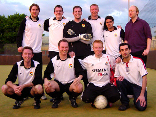 Deportivo La Croydon Founded: Summer of 2003 First Game: 6th August 2003 Club Colours: White shirts, Black Shorts, Black Socks League Affiliation: Jul '03 - Feb '06: Power League Croydon, Wednesday Night Club Honours: Wednesday Night Div. 9 Champions (Feb '04 - May '04) Daily Telegraph Cup Runners Up (11 Jul '04) Wednesday Night Div. 7 Runners Up (Dec '04 - Mar '05) Wednesday Night Div. 6 Champions (Jun '05 - Sep '05) Official Club Player of the Season Award: Season 1 (Jul '03 - Oct '03): Paul Loughlin Season 2 (Nov '03 - Feb '04): Guy Cartwright Season 3 (Feb '04 - May '04): Paul Loughlin Daily Telegraph Cup (11 Jul '04): Paul Loughlin Season 4 (May '04 - Aug '04): Marc Carey Season 5 (Sep '04 - Dec '04): Alex Ayres Season 6 (Dec '04 - Mar '05): Gavin Strong Season 7 (Mar '05 - Jun '05): James Lunn Season 8 (Jun '05 - Sep '05): ? Season 9 (Sep '05 - Nov '05): ? Season 10 (Nov '05 - Feb '06): ? |